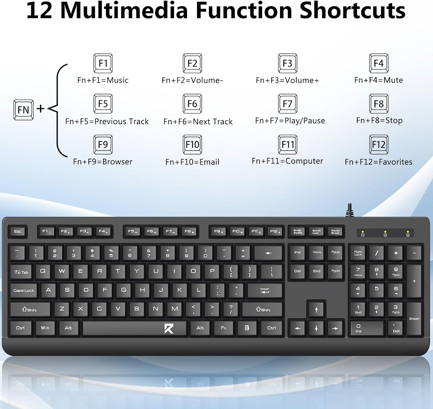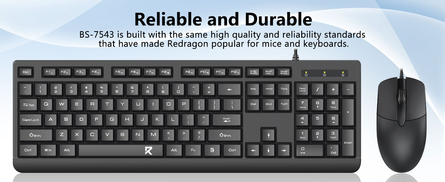 La combinazione tastiera e mouse cablati neri BC7543 presenta un layout di tastiera standard di dimensioni standard, incluso un tastierino numerico dedicato. Questo layout è ideale per le attività d'ufficio come l'immissione di dati, il lavoro finanziario e la gestione dei fogli di calcolo.