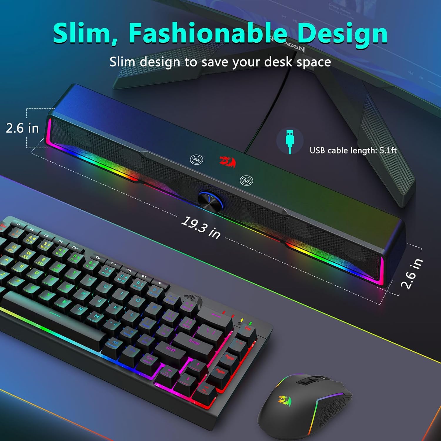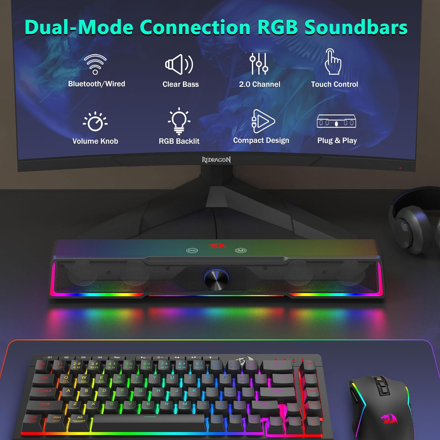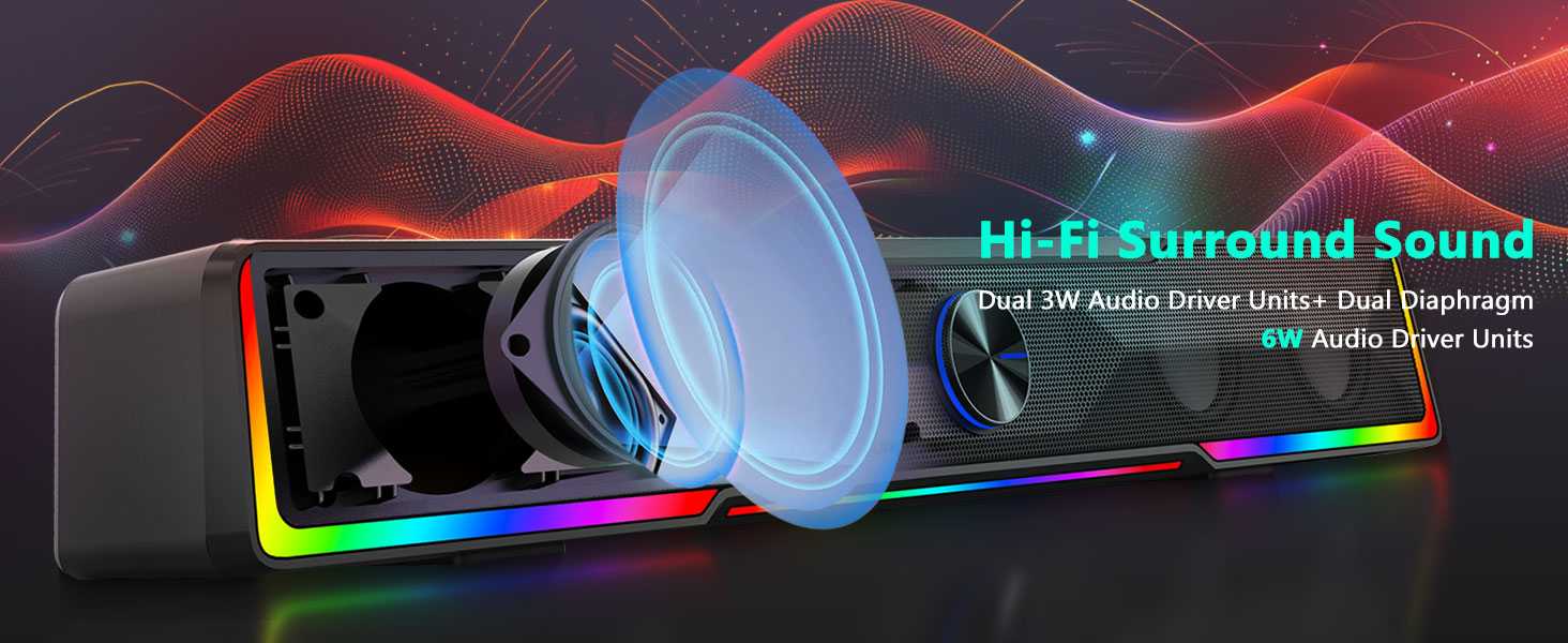 Suono stereo di alta qualità Dotato di potenti driver stereo, l'altoparlante per computer nero con manopola del volume della soundbar con connessione cablata Bluetooth GS516 offre un suono bilanciato con voci chiare, gamma media dettagliata e risposta dei bassi migliorata. L'altoparlante è progettato per produrre audio coinvolgente per più tipi di contenuti, inclusi film, giochi, podcast e musica.