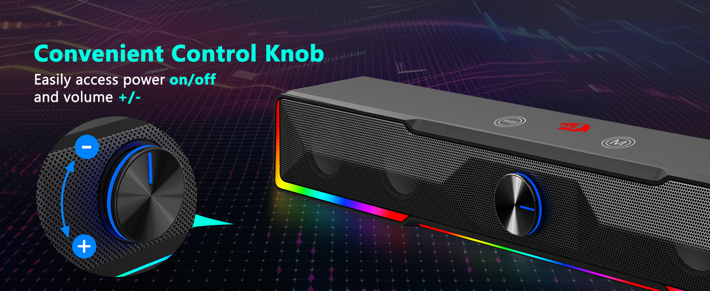 Controllo fluido della manopola del volume La manopola del volume integrata è una delle caratteristiche più convenienti dell'altoparlante del computer con manopola del volume della soundbar con connessione cablata Bluetooth/USB GS516 nero. Invece di regolare i livelli sonori tramite le impostazioni del sistema, gli utenti possono semplicemente ruotare la manopola per aumentare o diminuire istantaneamente il volume. Questo controllo tattile migliora l'usabilità durante le sessioni di gioco, la riproduzione musicale e le videoconferenze.
