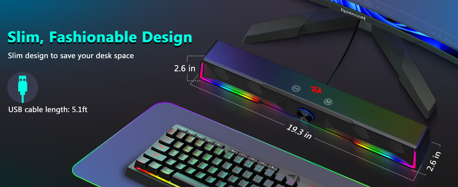 Design della soundbar salvaspazio A differenza degli altoparlanti tradizionali che occupano ampie aree su entrambi i lati del monitor, l'altoparlante per computer nero con manopola del volume e connessione cablata Bluetooth/USB GS516 presenta una struttura sottile della soundbar che si adatta comodamente sotto la maggior parte degli schermi dei computer. Questo design compatto aiuta a mantenere un ambiente sulla scrivania pulito e organizzato pur offrendo un audio ricco e coinvolgente.