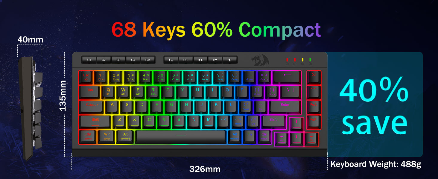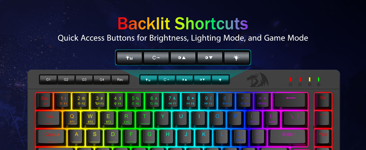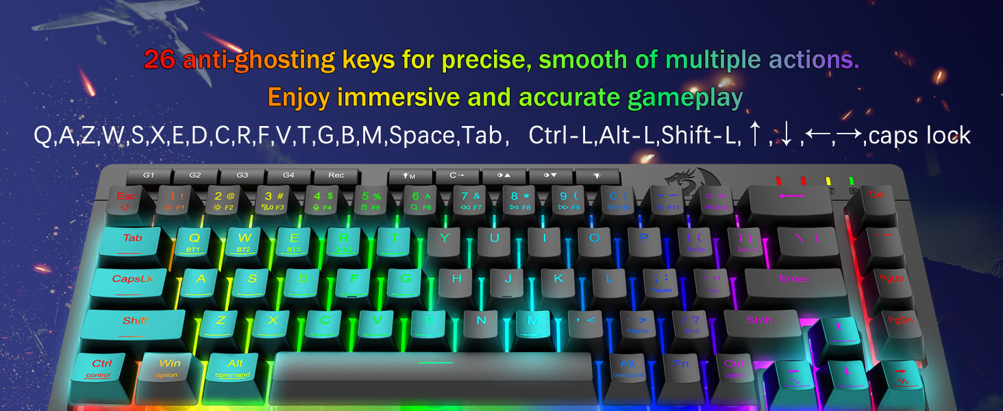 Prestazioni di gioco di livello professionale e controlli retroilluminati dedicati -Dotato di tasti anti-ghosting (tasti con un carattere di sottolineatura) che consentono a 26 tasti di funzionare contemporaneamente per risposte di gioco rapide e precise come desideri. Pulsanti di accesso rapido per luminosità, modalità illuminazione e modalità gioco per regolare rapidamente la luminosità, i profili di illuminazione e abilitare la modalità gioco con il semplice tocco di un pulsante.