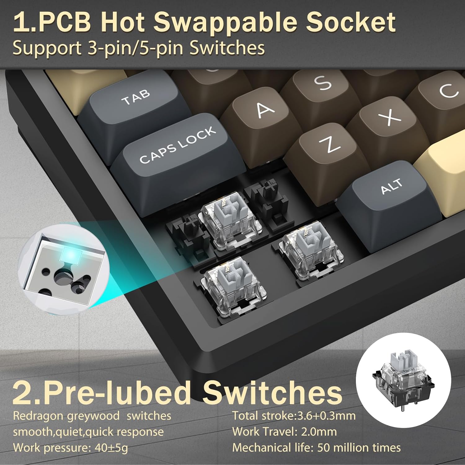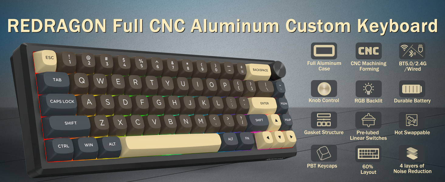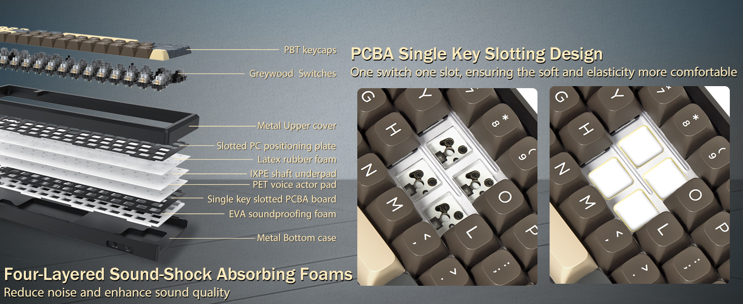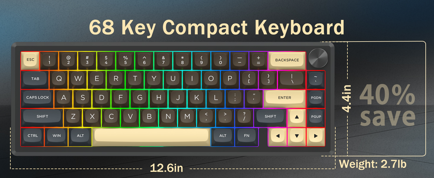 Con il suo layout al 60%, questa tastiera rimuove i tasti non essenziali mantenendo le funzionalità principali tramite combinazioni di tasti. Questo design aiuta a ridurre l'ingombro sulla scrivania e offre più spazio per il movimento del mouse, rendendolo adatto sia per ambienti di gioco che di produttività.