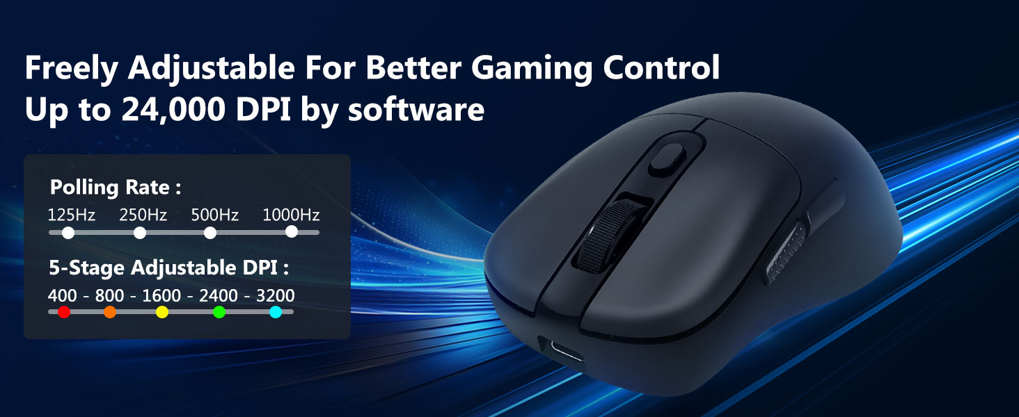 Il mouse è dotato di un sensore ottico ad alte prestazioni in grado di raggiungere fino a 24.000 DPI. Ciò consente agli utenti di regolare i livelli di sensibilità per diverse attività, dal controllo preciso del cursore alla navigazione rapida sullo schermo.