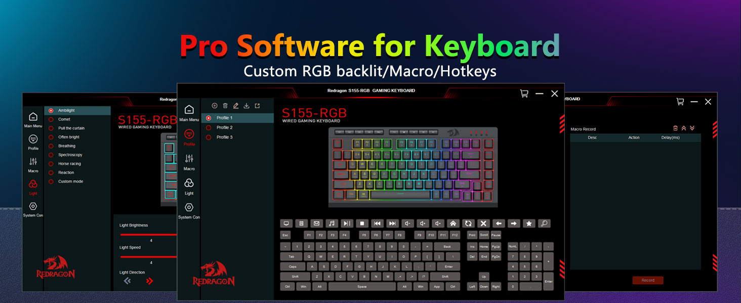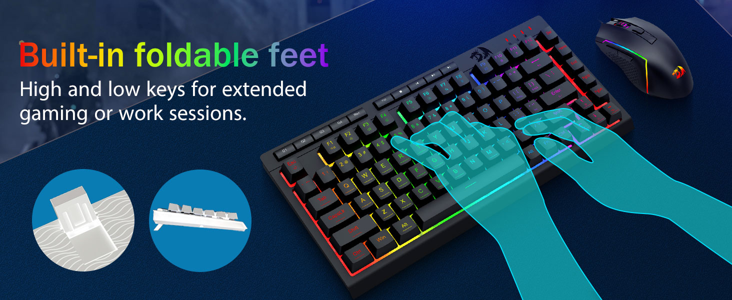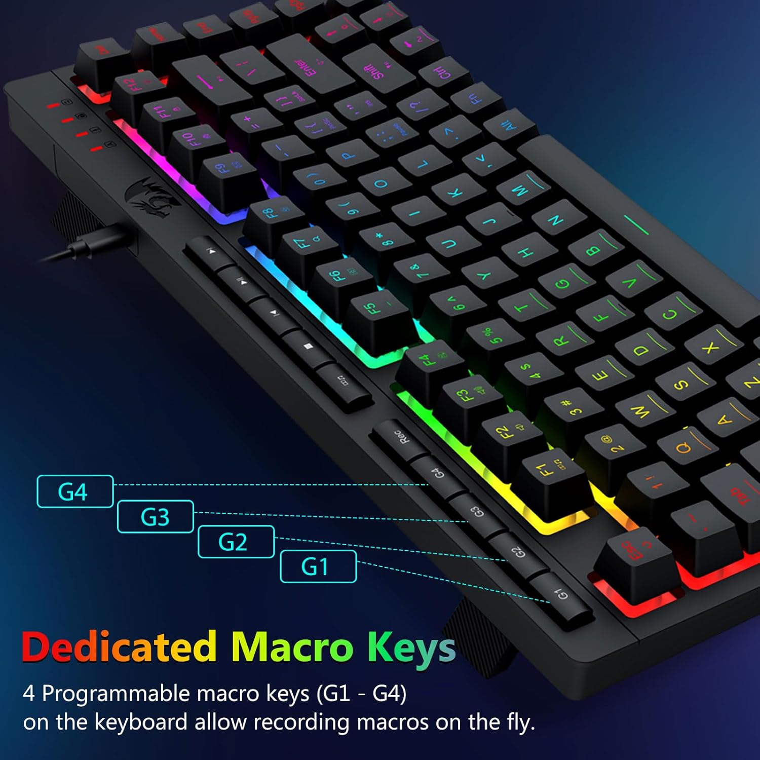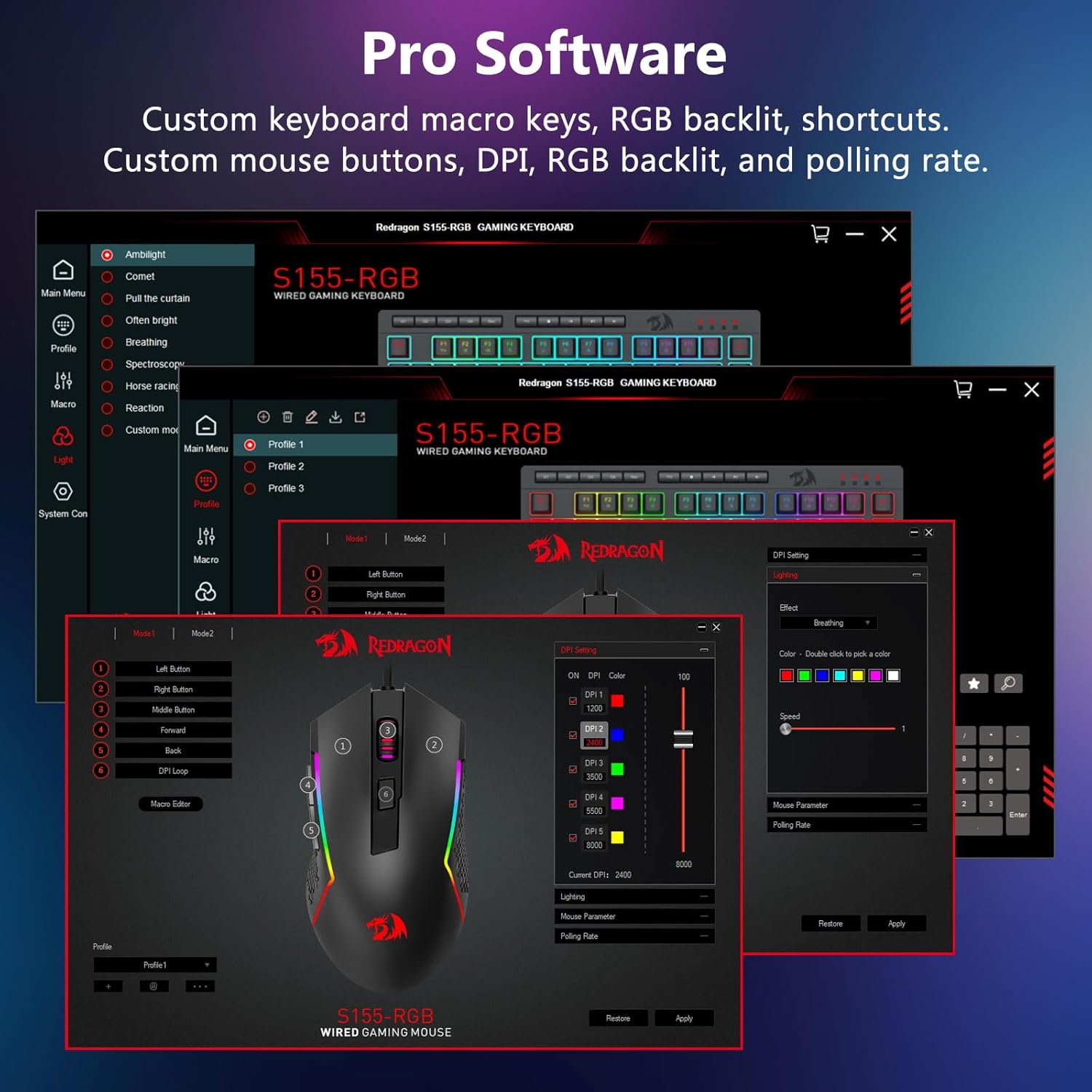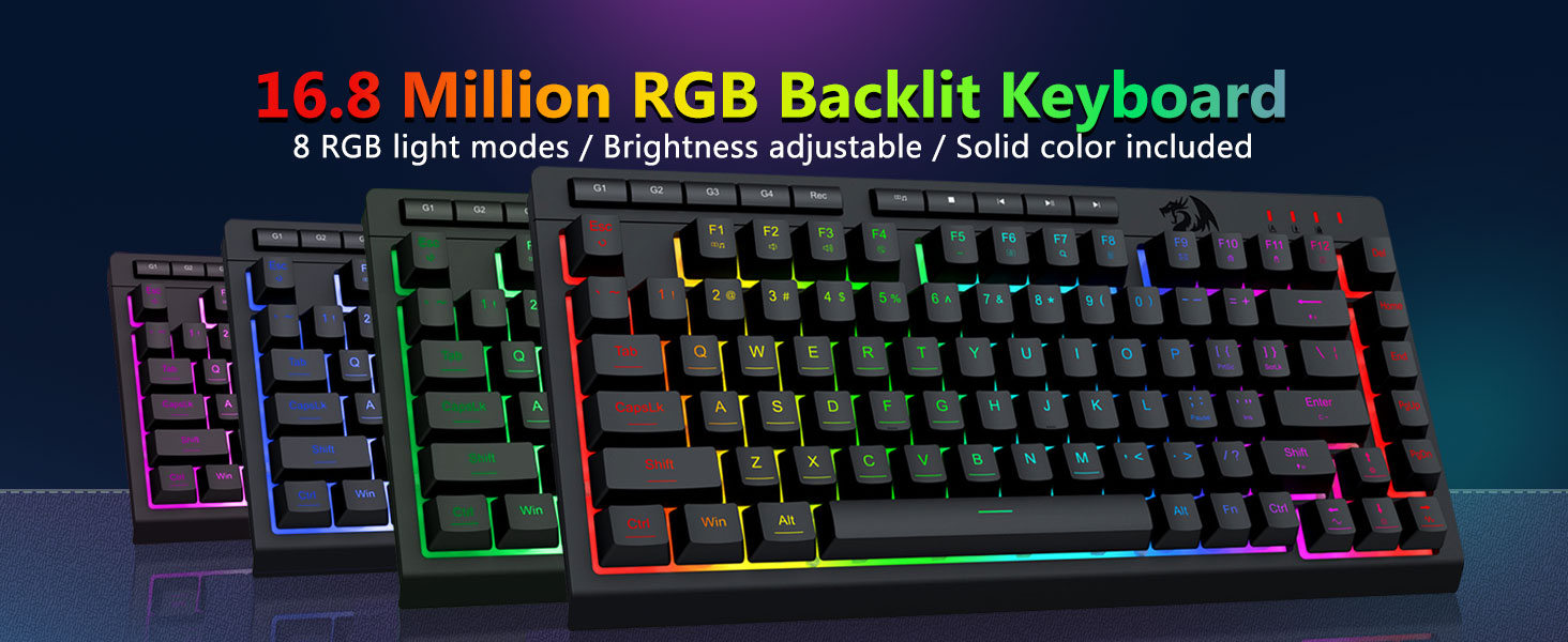 【Tastiera e mouse da gioco RGB】La tastiera da gioco ha 8 modalità di illuminazione RGB tra cui scegliere e il mouse da gioco ha 8 effetti di luce tra cui alternare e la tastiera può essere regolata su 4 livelli di velocità e luminosità in base alle proprie preferenze. I copritasti offrono una retroilluminazione chiara e uniforme. Che il set contenga una sola luce, effetti di luce mutevoli o nessuna luce, la tastiera e il mouse da gioco Redragon soddisferanno le tue esigenze!