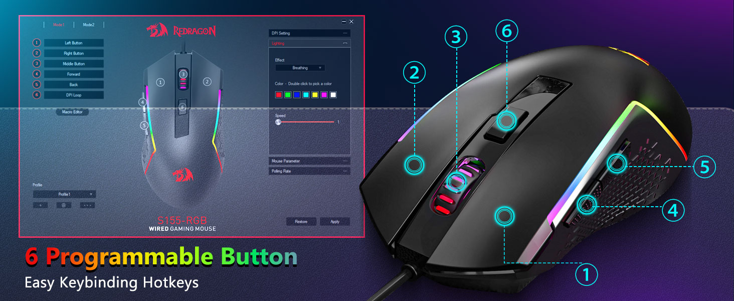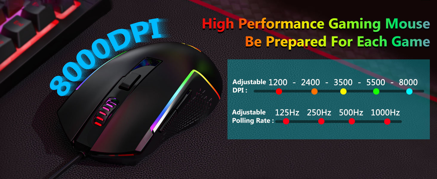 【Mouse da gioco professionale】Puoi regolare il DPI da 1200 a 8000 tramite il pulsante DPI o da 100 a 8000 tramite il driver del software per soddisfare facilmente le tue diverse esigenze di gioco o di lavoro. Totale 7 pulsanti di cui 6 programmabili. Il sensore ad alta precisione offre una precisione millimetrica mentre i microinterruttori di livello gaming garantiscono longevità, maggiore durata e reattività estrema, offrendoti un vantaggio ancora maggiore rispetto alla concorrenza. (Il software supporta anche la regolazione della velocità di polling del mouse fino a 1000 Hz)