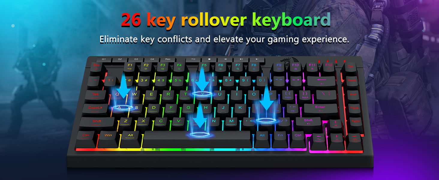 【Gioco confortevole】Il supporto pieghevole della tastiera, il rivestimento delicato sulla pelle e i copritasti mobili aumentano il comfort di digitazione. 26 tasti L'anti-ghosting garantisce che ogni pulsante possa essere attivato. Il tasto WIN può essere disabilitato per i giochi. Questa tastiera e questo mouse sono pensati per fornire un'esperienza di gioco efficiente garantendo al tempo stesso il massimo comfort