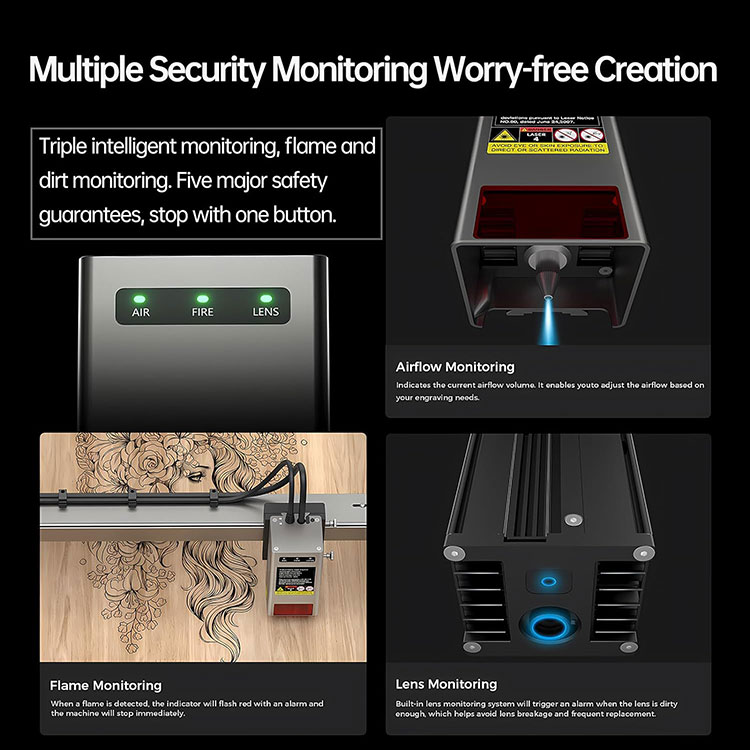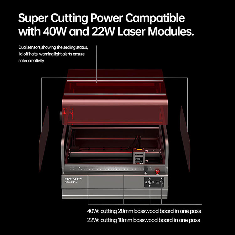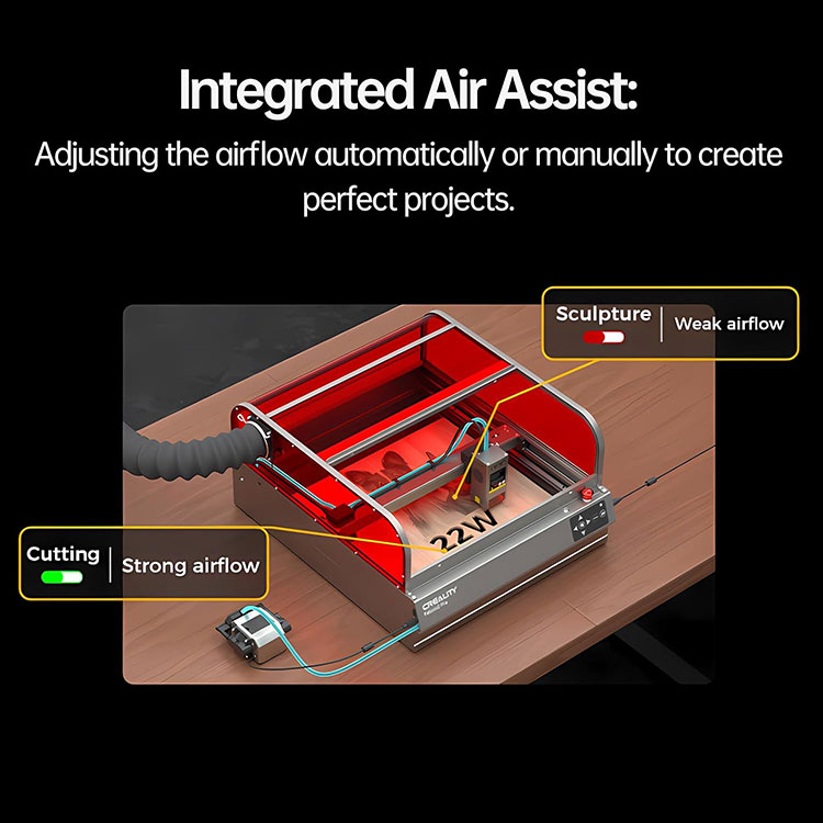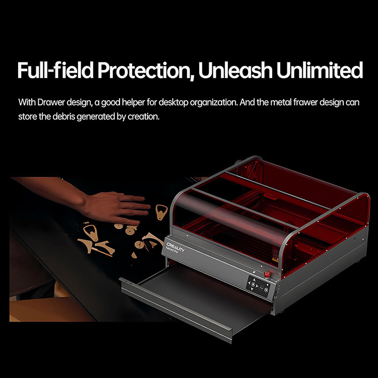· ❤️ Design chiuso con super potenza di taglio:L'incisore Creality Falcon2 Pro da 22 W con doppi sensori, che mostra lo stato di sigillatura, gli arresti del coperchio e gli avvisi luminosi garantiscono una creatività più sicura, che può tagliare pannelli di tiglio da 10 mm in un solo passaggio. Con Integrated Air Assist, che può regolare il flusso d'aria automaticamente o manualmente per creare progetti perfetti.