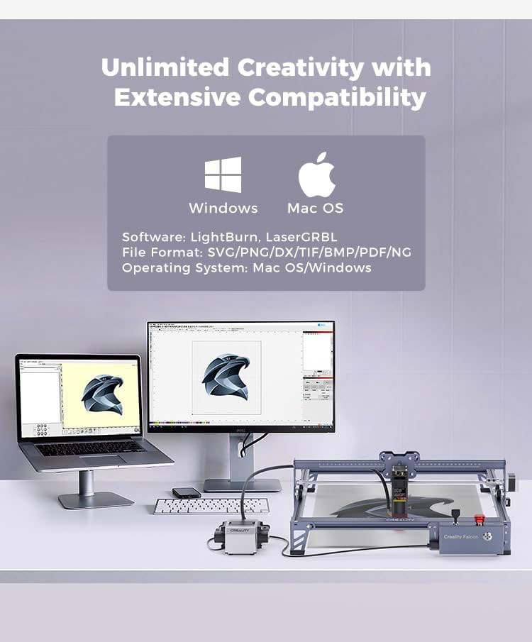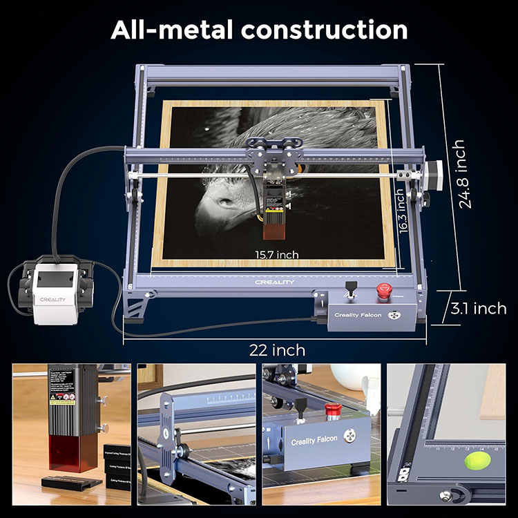 · 【Forte e durevole con dettagli sulla compatibilità】La precisione e la fluidità del movimento sono assicurati da leghe di alluminio anodizzato, poggiapiedi in silicone a forma di L e una guida in acciaio da 8 mm. Un livellatore integrato evita lo scivolamento ed è calibrato per determinare se l'attrezzatura per l'incisione laser è posizionata correttamente. Dopo aver ottenuto il pacchetto, è necessario installarlo da soli; il completamento richiede circa 10 minuti. L'incisore laser Creality Falcon è compatibile con una varietà di programmi di incisione, tra cui LightBurn per utenti laser esperti e LaserGRBL per nuovi utenti laser.