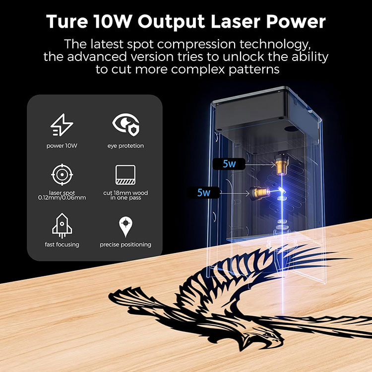 Incisore laser Taglierina laser Falcon Pro 10W, Taglierina laser Falcon Pro 10W per regali personalizzati, Macchina per incisione laser ad alta precisione con assistenza pneumatica, macchina CNC e incisore laser per legno e metallo, carta, acrilico, vetro