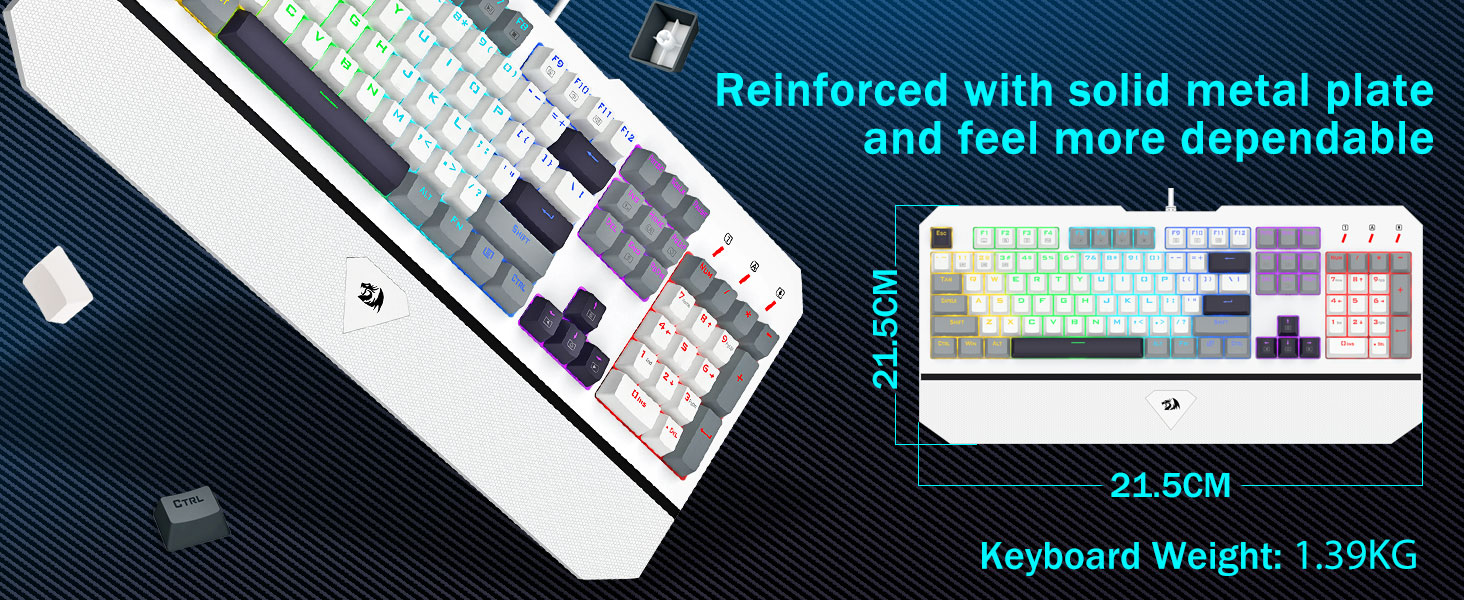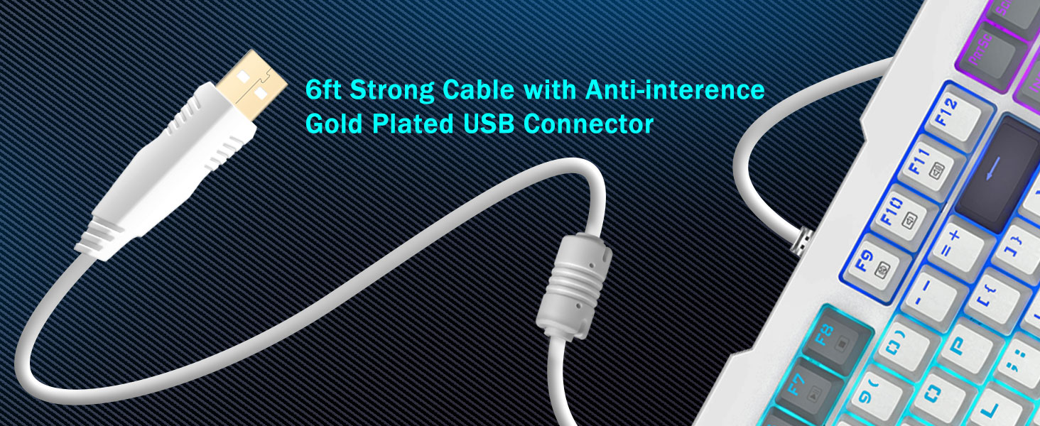 【Tastiera full-size da 104 tasti di fascia alta】Realizzato con una lega metallica di prima qualità e materiale ABS, il pannello della tastiera è estremamente robusto e resistente ai graffi. Il connettore USB placcato in oro garantisce una connessione stabile e affidabile per prestazioni di gioco eccezionali. Con un peso di 1,39 kg, questa tastiera sembra un solido carro armato nelle tue mani, garantendo una stabilità senza pari durante l'uso.