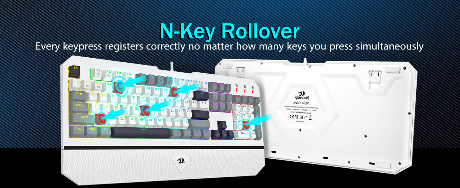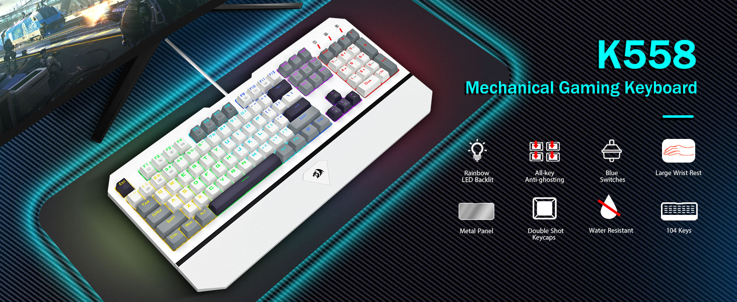 【Anti-Ghosting al 100% e 11 scorciatoie multimediali】Goditi una digitazione fluida con la tecnologia anti-ghosting al 100%, che consente a tutti i tasti di registrarsi simultaneamente, indipendentemente dalla velocità di digitazione. Con 11 scorciatoie da tastiera multimediali, puoi accedere rapidamente a funzioni come calcolatrice, controllo multimediale e regolazione del volume. La tastiera da gioco meccanica K558, completa di tastierino numerico, aumenta la tua produttività. Compatibile con Windows 7/8/10/XP/VISTA/95/98/2000/ME e Mac OS, Xbox, ecc., questa tastiera ha una durata fino a 50 milioni di battute.