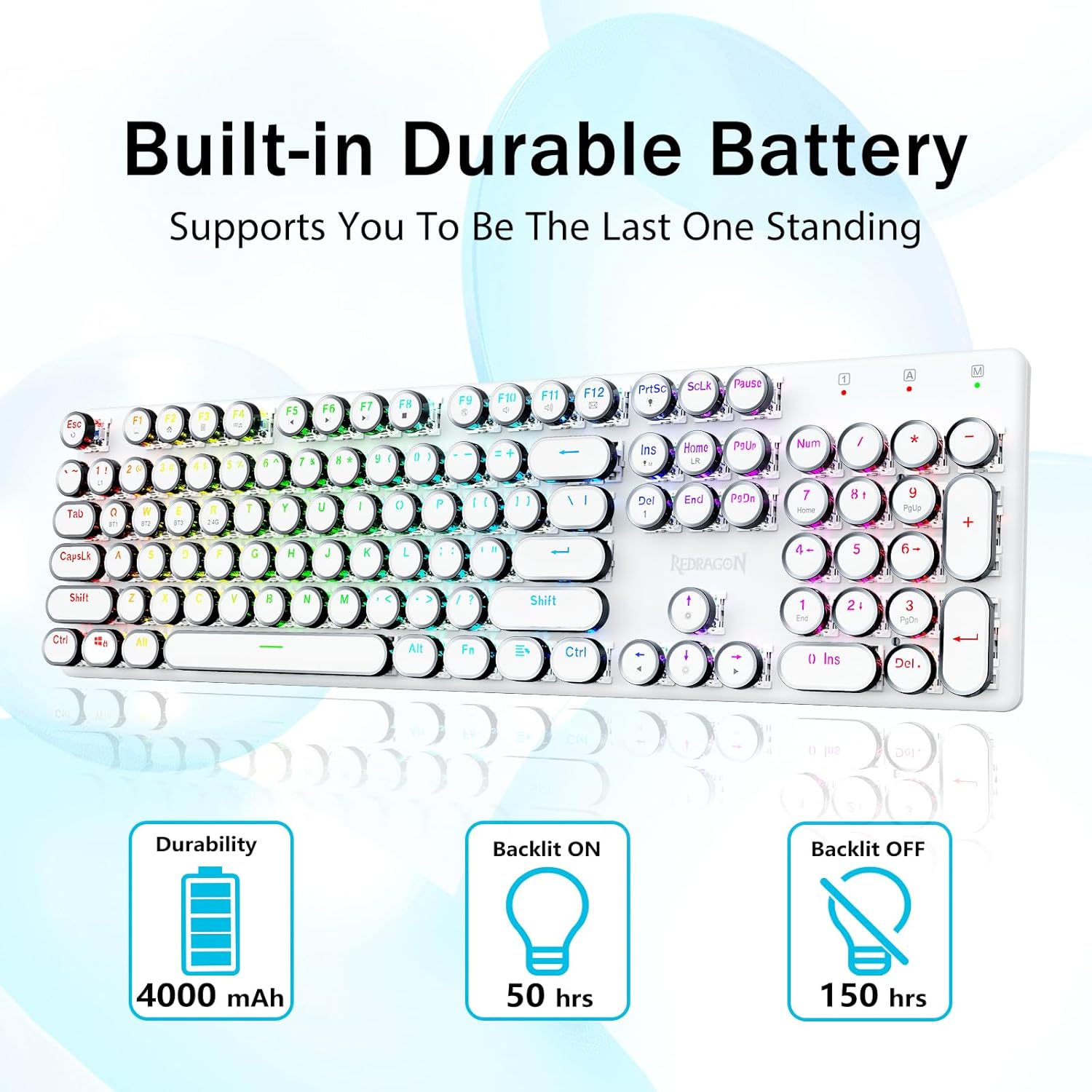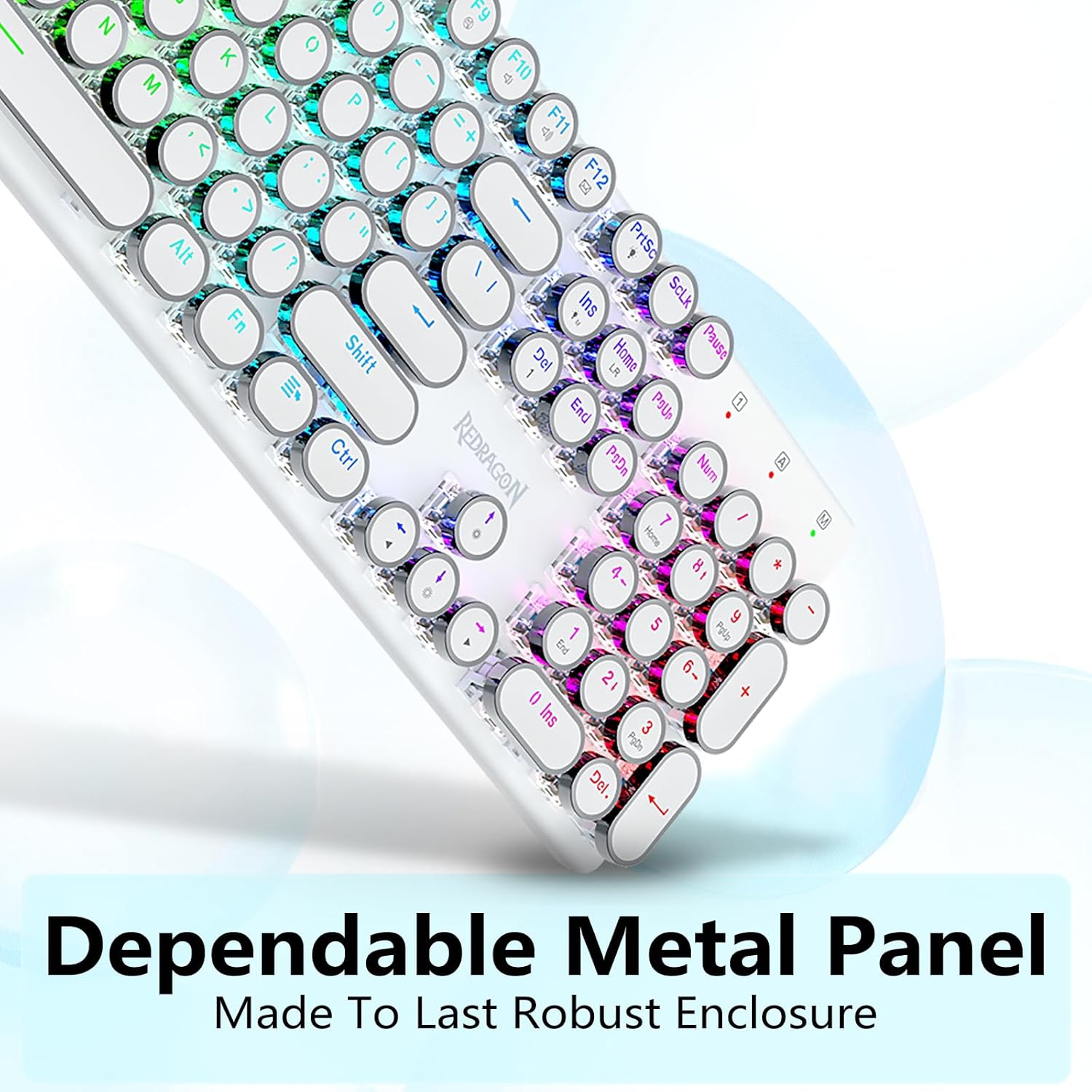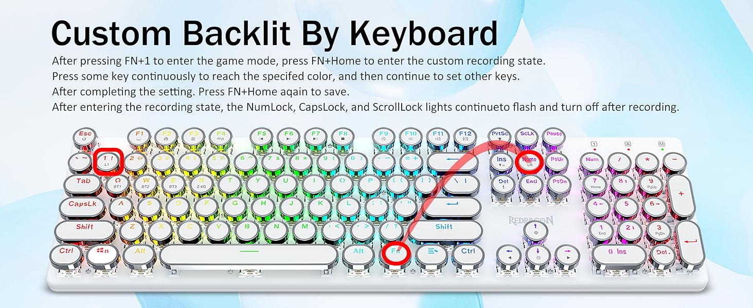 𝗥𝗲𝘁𝗿𝗼 𝗧𝘆𝗽𝗲𝘄𝗿𝗶𝘁𝗲𝗿 𝗦𝘁𝘆𝗹𝗲 𝘄𝗶𝘁𝗵 𝗠𝗲𝗰𝗵𝗮𝗻𝗶𝗰𝗮𝗹 𝗞𝗲𝘆𝘀- Gli interruttori blu Redragon Mechanical offrono resistenza media, suono di clic udibile e feedback tattile, forniscono ambiente e prestazioni di gioco reattivi e precisi. I copritasti rotondi della tastiera steampunk vintage assomigliano a una macchina da scrivere classica, ti offrono una sensazione di digitazione confortevole e un tocco stabile.