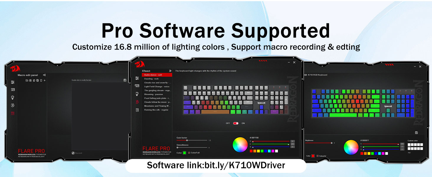 𝗣𝗿𝗼 𝗦𝗼𝗳𝘁𝘄𝗮𝗿𝗲 𝗦𝘂𝗽𝗽𝗼𝗿𝘁𝗲𝗱- Espandi le tue opzioni utilizzando il software disponibile per progettare le tue nuove modalità ed effetti. Macro con diverse combinazioni di tasti o scorciatoie per lavorare e giocare in modo più efficiente. Link software: bit.ly/K710WDriver.