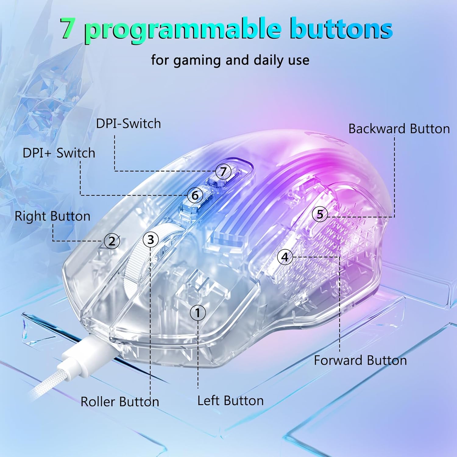 Il mouse da gioco cablato CHUANGQUAN M695CT bianco da 24.000 DPI con 8 LED RGB in modalità retroilluminata offre tracciamento ultra preciso, controllo fluido e illuminazione dinamica, progettato per i giocatori che richiedono velocità, precisione e stile.