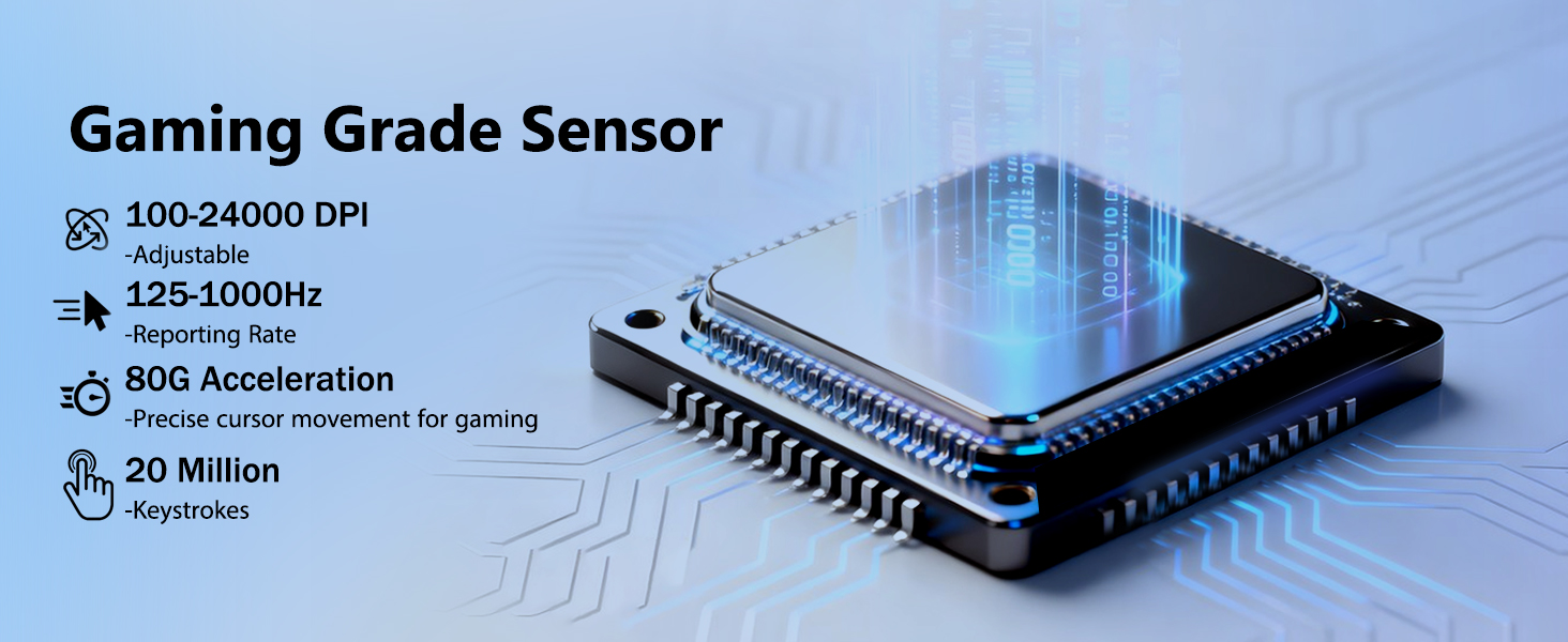 Il mouse è dotato di un sensore ottico avanzato in grado di raggiungere fino a 24.000 DPI. Ciò consente agli utenti di regolare la sensibilità in base a diversi scenari, dal targeting preciso nei giochi al movimento rapido del cursore su schermi di grandi dimensioni.