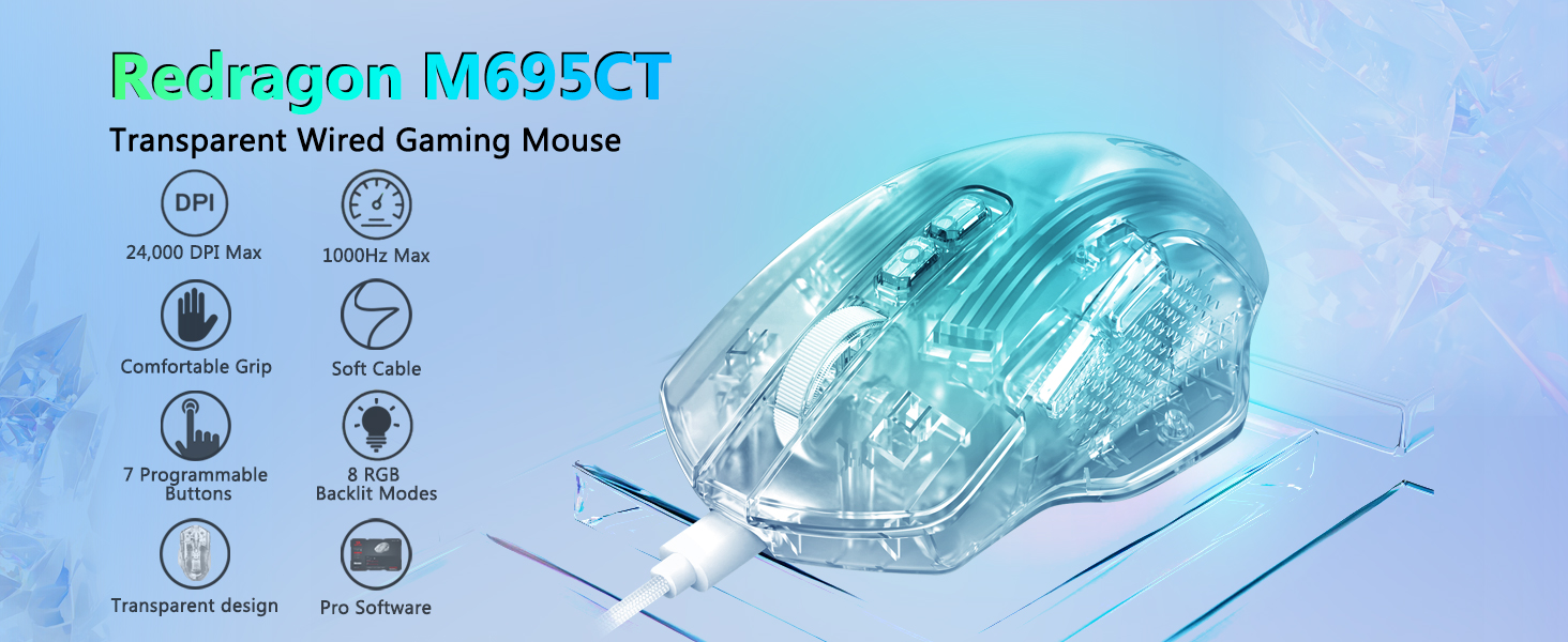 Con una connessione cablata affidabile e un set di funzionalità pratiche, il mouse da gioco cablato bianco M695CT da 24.000 DPI con 8 LED RGB in modalità retroilluminata è una scelta affidabile per gli utenti che cercano controllo costante e prestazioni efficienti nei moderni ambienti informatici.